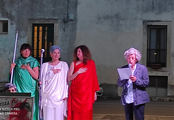 Hanno condotto la serata Giorgia Carluccio, del Direttivo Auser, e la presidente Antonietta De Gabriele. L’evento è stato animato dal tenore Mimmo Calcagnile e dalle letture di Caterina Piconese. Il Gruppo Auser ha eseguito l’inno nazionale, animandolo con particolare movimenti, mentre Luigi Piccioli si è occupato delle musiche.