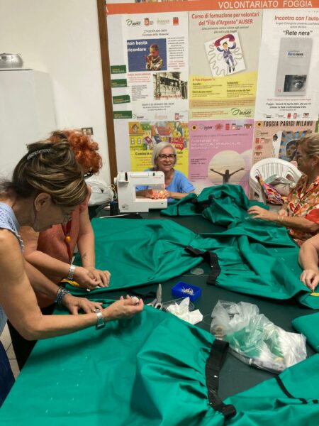 I costumi che verranno indossati dalle danzatrici e dai danzatori foggiani sono stati disegnati e cuciti dal laboratorio di sartoria della tradizione dell’Auser di Foggia, a testimonianza di un invecchiamento attivo a tutto tondo, che nel recupero e nella valorizzazione del passato trova un entusiasmante momento espressivo e solidale.