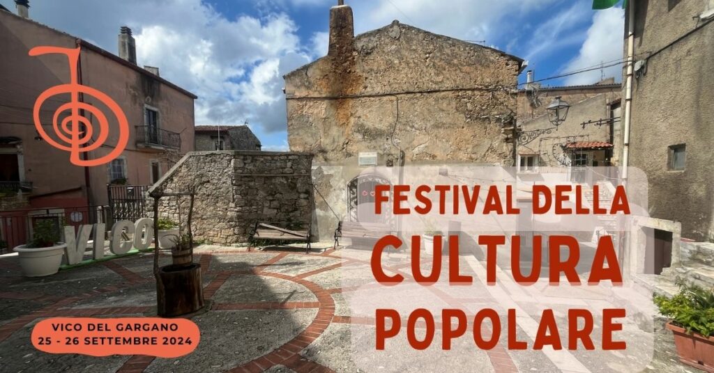 Cercherà di ridare vita ed espressione a questi frammenti il Festival della Cultura Popolare che si svolgerà a Vico del Gargano il 25 e il 26 settembre 2024, e che rappresenta una della più qualificanti linee di attività del progetto «Memoria Coesione Futuro», promosso dall’Auser provinciale di Foggia, dal Circolo Auser di Vico del Gargano e da Spi Cgil Foggia, con il sostegno dell’assessorato al welfare della Regione Puglia (bando PugliaCapitaleSociale 3.0).